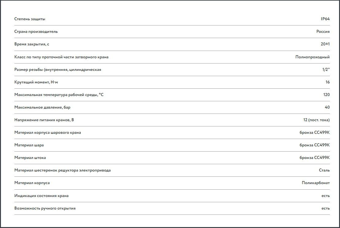- Индикация состояния крана «открыто/закрыто».